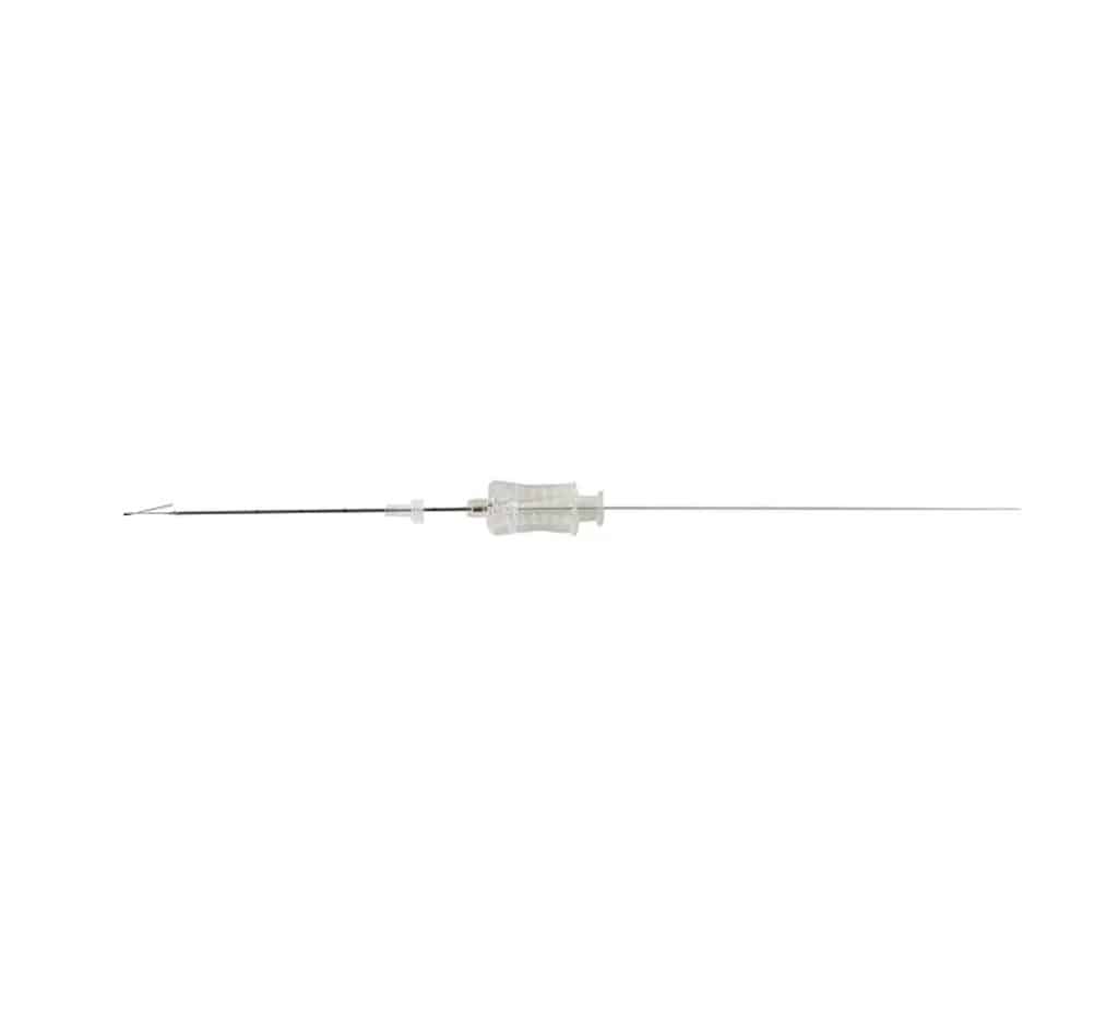 This device is equipped with an AISI 304 stainless steel cannula with a lancet tip to enable high penetration capacity, avoiding excessive deflection and maximizing insertion precision. The device also comes with a transparent luer lock with an insertion funnel for easy wire loading.