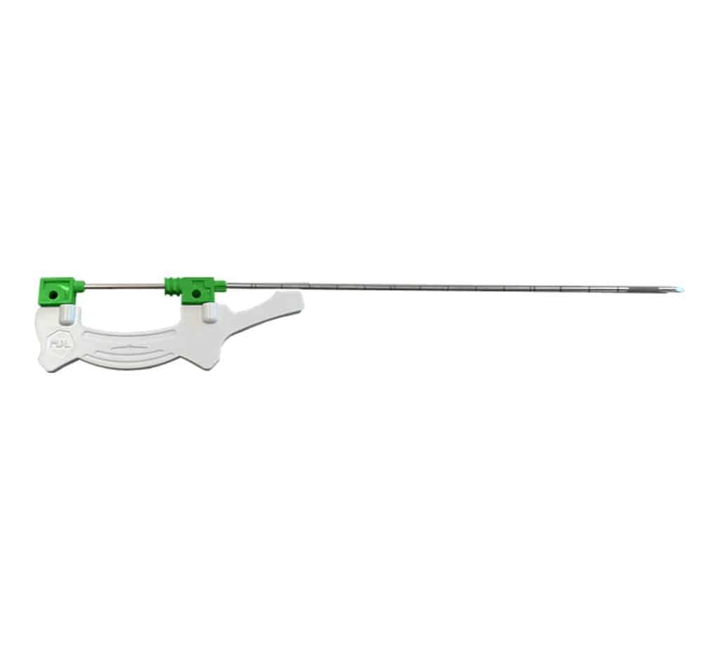 The device is equipped with an AISI 304 stainless steel cannula with “Menghini” sharpening that allows for atraumatic, precise cutting of soft tissues. Centimeter markings on the cannula surface allow for easy determination of insertion depth.